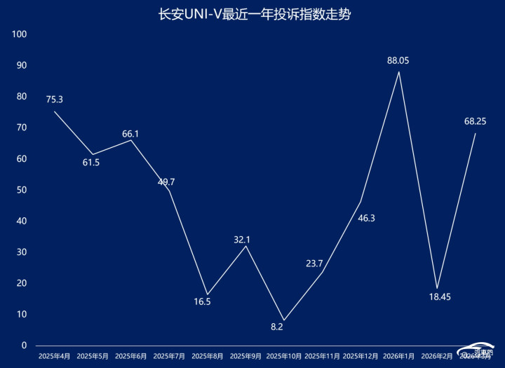 汽车质量投诉点评:3月,长安UNI-V的投诉指数达到了68.2,尾灯开裂、门把手无法回弹/自动弹出遭到车主投诉。有车主投诉称,车辆贯穿式尾灯在无撞击、无剐蹭的情况下出现自然开裂,裂缝从中间拼接处延伸并伴随进水、起雾等问题。此外,还有部分车主反馈,隐藏式车门把手存在偶发无法正常弹出的故障,时而卡滞无法开启,时而又能自动恢复弹出,稳定性较差。